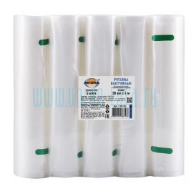Рулоны вакуумные AVIORA предназначены для вакуумирования продуктов питания, например, овощей и фруктов, мяса и рыбы, орехов и ягод, и т.д. Рулоны вакуумные идеально подходят для маринования мяса и рыбы. Рулон представляет собой рукав длиной 5 метров, запаянный по бокам. Одна внутренняя стенка рулона гладкая, другая внутренняя стенка - рифленая. Такие насечки на одной из стенок позволяют лучше откачивать воздух при вакуумировании. Толщина гладкой стороны составляет 80 мкм, толщина рифленой стороны - 100 мкм. Для использования отрезать необходимую длину, запаять с одной стороны, разместить продукты, поместить в вакууматор, который откачает воздух и запаяет пакет. В таком виде продукты хранятся в несколько раз дольше, сохраняются вкусовые свойства и свежесть. Рулоны подходят для любых бытовых вакууматоров. Не подходят для запекания. Не содержит бисфенол А (BPA free). -